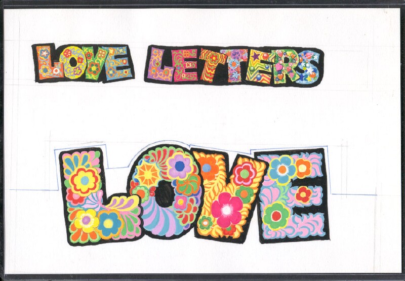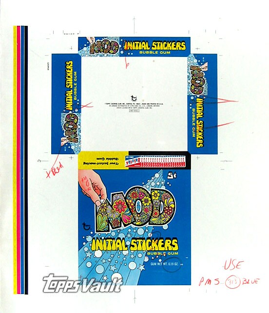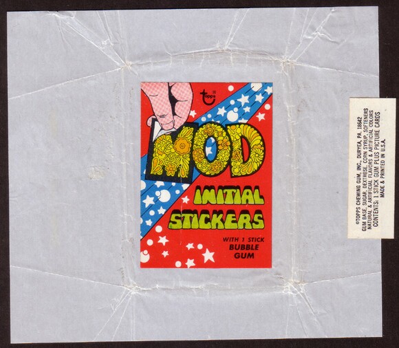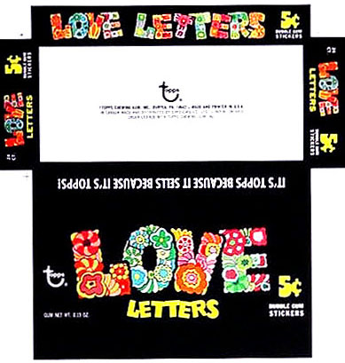 TOPPS LOVE INITIALS (1968) 88 white back peel-off stickers. Wrapper serial # 0-489-87-01-9 Stickers painted by Norm Saunders.